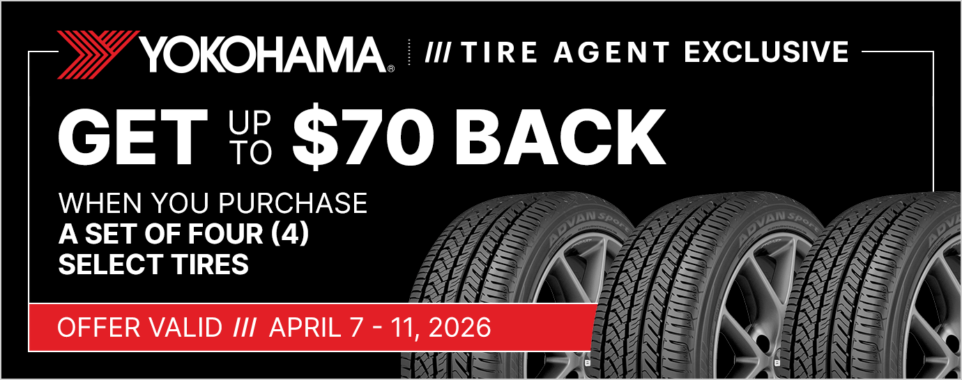 Offer valid for residents of the United States (excluding Hawaii and Alaska) only. Purchase must be completed between 04/07/2026 and 04/11/2026. Limit of one (1) redemption request $70 Reward per purchase of four (4) select Yokohama tires.